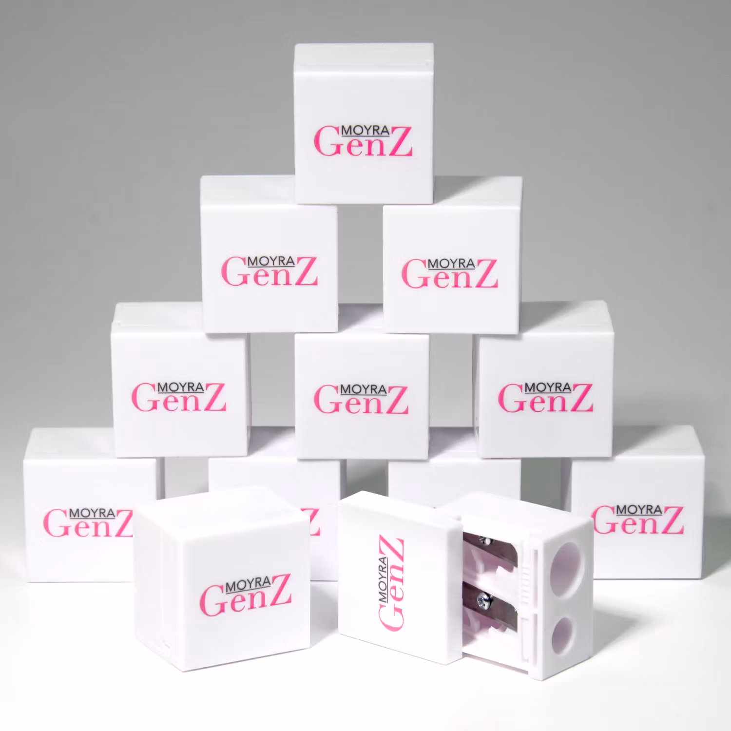 Med to åpninger i ulike størrelser passer den til både standard og større kosmetiske blyanter. De skarpe bladene gir jevn spissing uten at blyanten knuser eller fliser seg, og den integrerte beholderen samler opp spon for enkel og ren bruk.