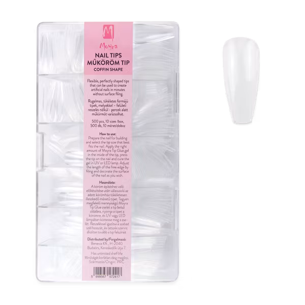 Systemet de fleste prater om, enkelt, rask, men like holdbart! Tippene er lagt i et utrolig slitesterkt materiale, men som er fleksibelt. Tippene finnes i ulike former, så her er det bare å velge sin favoritt. Disse benyttes sammen med Moyra Tip Glue Gel I, som er spesielt utviklet som et baselag på preppet naturnegl.